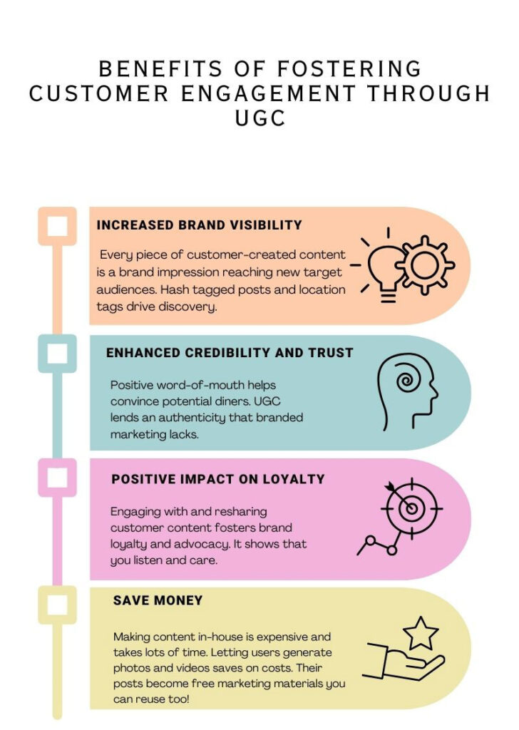 The takeaway is user content offers invaluable authenticity for reaching modern diners. With higher reach and lower costs than professional shoots, UGC delivers an emotional brand punch through real customer narratives.